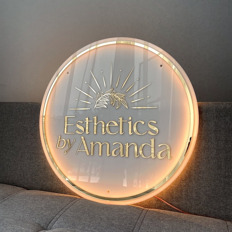 Make Your Brand Shine, Show off your unique style with a custom backlit logo sign designed just for your business. Choose your favorite LED glow, metallic sticker color, and size, then add your logo or message to create a one-of-a-kind piece that reflects your brand’s personality.